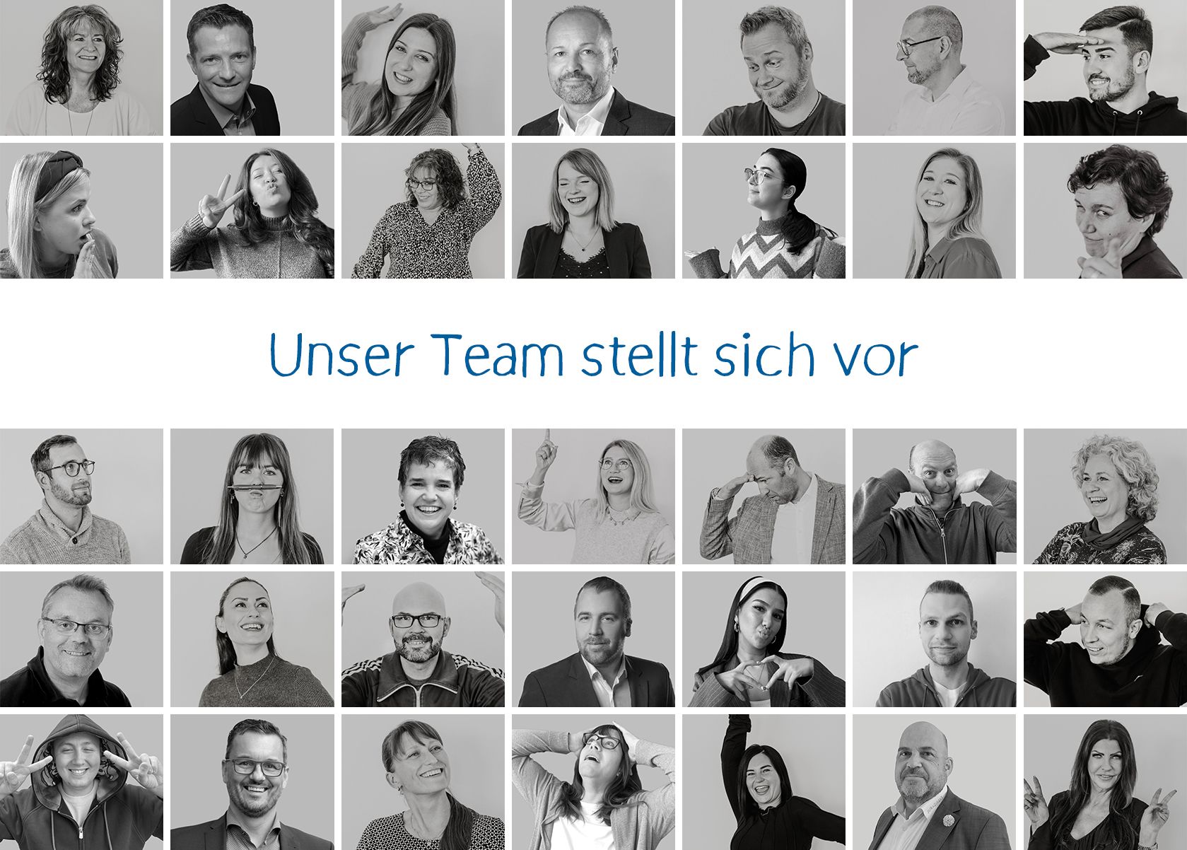 Teams und ihre Fachbereiche: Geschäftsführende Gesellschafter, Kundenbetreuung, Vertrieb, IT Projekt- und Prozessmanagement, Marketing, Programmierung uns Regionsverantwortliche.